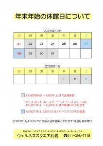 12月27日(土)、28日(日)はスポーツクラブのみ営業