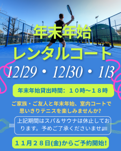 上記の日程でテニスコートのレンタル特別営業いたします。